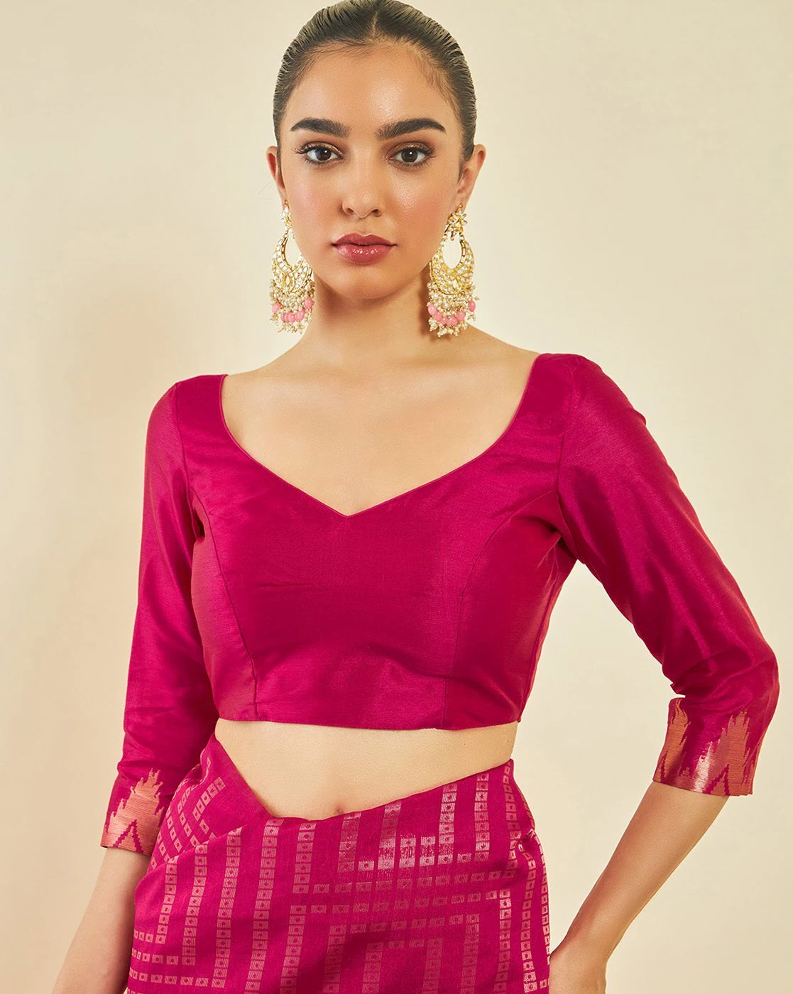 • The last image gives a detailed look of the blouse piece that comes with this saree (The blouse in the images is only for styling purpose)